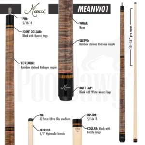 Notorious for craftsmanship, Meucci Cues are some of the most sought after cues in the billiards industry. Your shots will