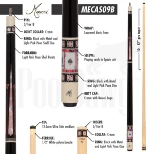 The Meucci Casino series is one of the most pristine cue series. This black elegant Meucci BMC Casino 9 features