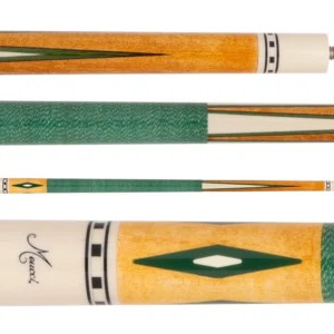 The EC-7 pool cue from Meucci’s Economy line is nothing short of impressive. A stunning green and ivory color theme