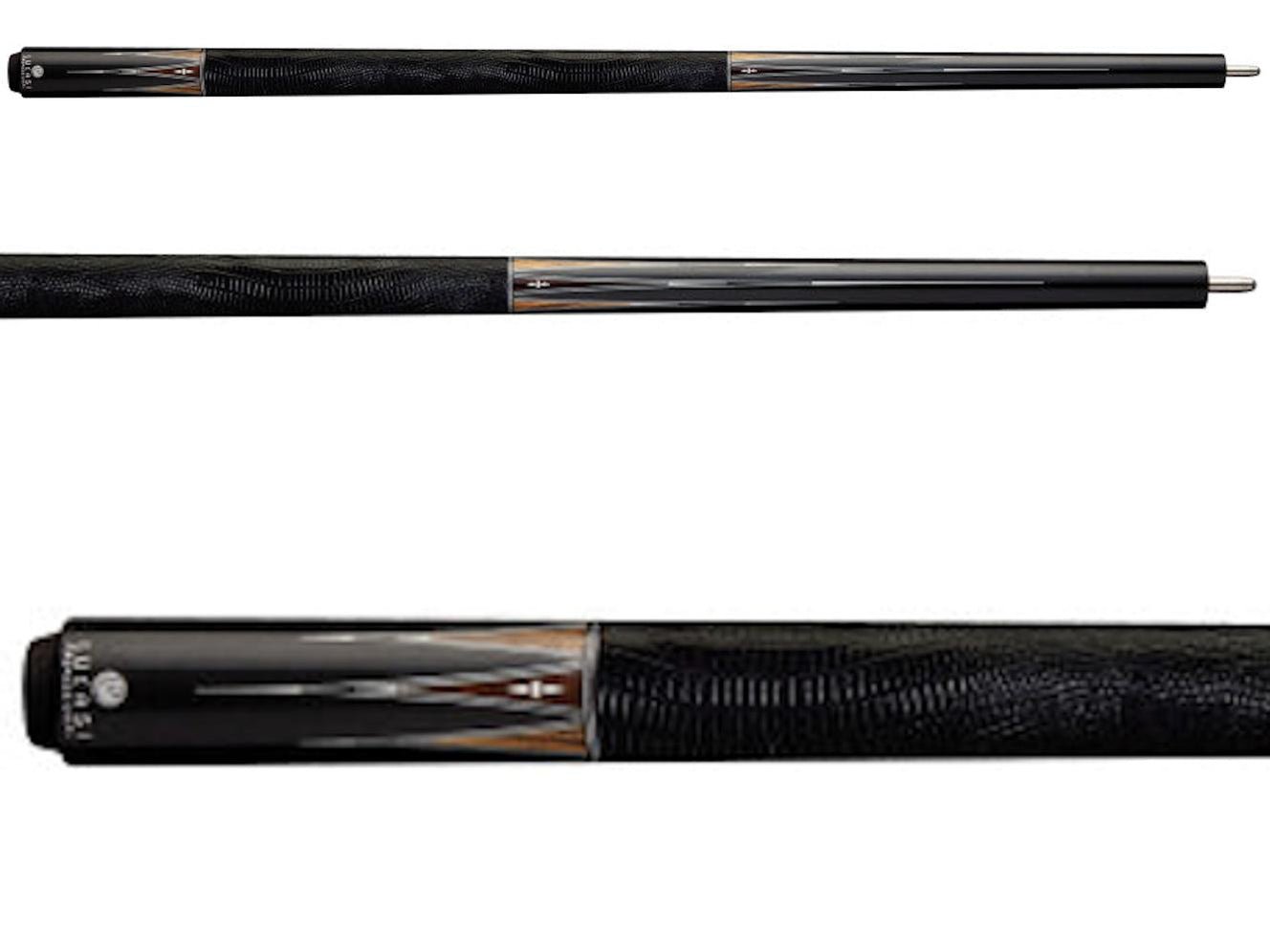 The Lucasi Pro Series features premium butt only options with exotic wood inlays. Choose from Uni-Loc, 3/8×10 or a Radial Pin to pair with your favorite Carbon Fiber or wood shafts. This cue features a premium 4-Piece Full Butt Construction: Engineered with exotic Bocote, Black Palm, and imitation bone inlays. The unique 4-piece construction that runs through the entire butt section, providing optimal balance and performance. The wrap sports a black lizard-embossed leather wrap.