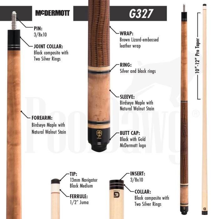 you’re looking for a straight forward cue that plays great, look no further than McDermott! The G327 features figured birdseye maple in both the forearm and the butt sleeve, and a lizard embossed leather wrap that’s designed to give you increased grip and feel. Also, this cue comes with McDermott’s super popular G Core shaft.