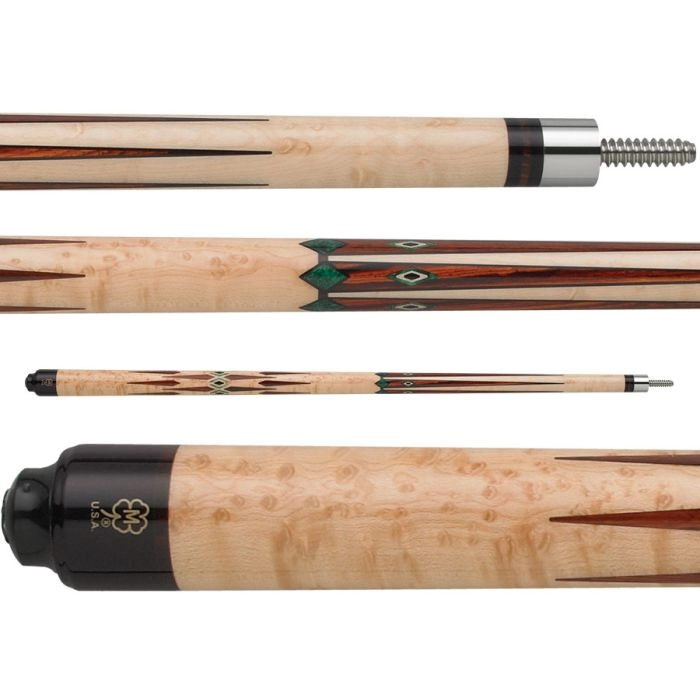 Oh, baby! McDermott has been making gorgeous pool cues for over 45 years, and the G708 is truly one of their best offerings to date. This cue is crafted out of birdseye maple and features some really stunning Cocobolo, recon ebony, and green burl inlay work all along the forearm and handle of the cue. To really sweeten the deal, this cue also includes one of McDermott’s top-of-the-line i-2 Intimidator shafts with matching Cocobolo and green burl inlaid right into the shaft! This is a truly beautiful cue that you’ll have to see to believe.