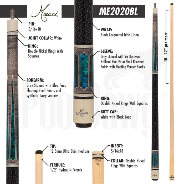 The 2020 Blue Paua Shell Pool Cue is another great addition to the series by Meucci – Unleash precision and performance on the felt with the Meucci 2020 pool cue. Meticulously crafted for cue enthusiasts and professionals alike, this cue boasts cutting-edge technology and timeless design. Engineered for exceptional accuracy and control, each shot becomes a masterpiece of skill. The Meucci 2020 cue features advanced construction materials that enhance your playing experience, ensuring consistent and powerful strikes. With its striking aesthetics and innovative engineering, this cue is a must-have for players who demand nothing but the best. Explore the world of precision and style with the Meucci 2020 pool cue – Your path to victory starts here.