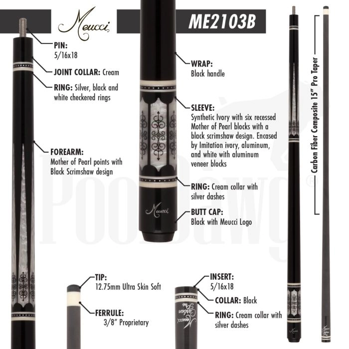 This is another great option from Meucci and their 21st Century collection. This cue was made for performance as it is paired with a carbon fiber shaft. It exudes excellence and grace in the synthetic ivory and mother of pearl points. If you are a person who can’t help but to love the luxurious things in life this is the cue for you. We left out the wrap to keep on theme with the sleek black refined look. Also comes with a very sought after Carbon Fiber shaft. Be the beast to this beauty today!